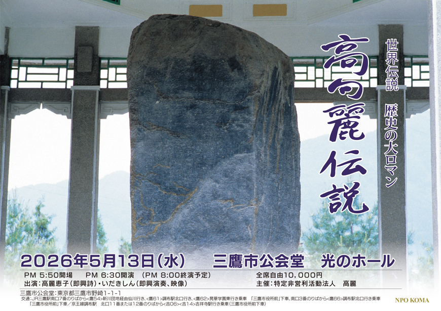 詩人高麗恵子は自然と愛、栄光の夢を生きる人間について彼女の黙示と言葉の中で永遠との春のような 彩に包まれ、あたかも花々や木々と水から生まれた使徒のごとく姿を現す。 美しい葉叢と瑞々しい蕾に囲まれ花開く。彼女が歩みを進める時、吹き過ぎるそよ風が彼女を立ち止まらせ、小鳥たちは待ち焦がれたように、彼女のもとに飛び来たってその小さな肩に止まる。 彼女の周りには群れをつくる鳩が旋回し、その場は鳥の羽ばたきと平和の調べに満たされる。 幸福の香りが広がり、人々の心にも生命の血脈にも愛が広がる。 彼女が行くところどこでも、剣は下に向け頭を垂れ、その激情は大地を抱擁するように鋤に変わってしまう。 大地に蒔かれた種を発芽させ、やがて花開かせる。花冠を高くかかげ、互いの心の交感や曇りのない純粋さの大義を歌い上げる。